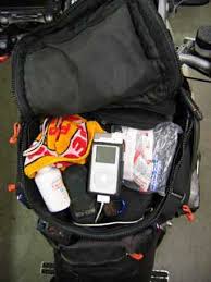 One of the most useful bags for your bike is the ever popular tank bag. Tank Bags come in a ton of different sizes, from thin little things designed to hold your sunglasses and a granola bar to giant 2 tier ones that almost block the road ahead and can carry enough for 1 person to stay overnight someplace. All along with everything for the day long ride stuffed in there as well, these bags are incredibly useful on your trip. Most tank bags mount with strong magnets to your tank, some of the better ones will also have straps to further secure them. They come in leather, cordoua, cloth, etc... and can make a very long ride more comfortable, although they can be a bother when they sit over your fuel cap, then you have to remove it to fuel up. This minor inconvenience is worth it. A tank bag is the first piece of luggage you should buy it will make even day rides fare more comfortable by keeping smaller items or even a bottle of water handy.